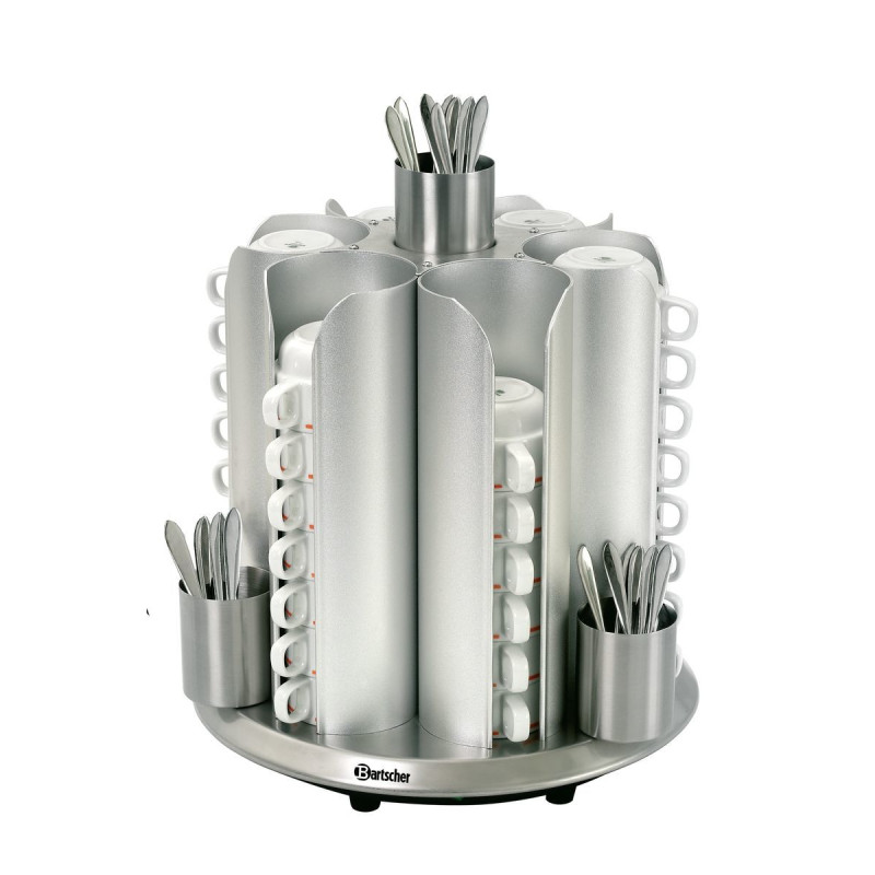 This Cup Warmer made of stainless steel, a resistant and sturdy material, has a capacity of 72 cups. It features an on/off switch for easy use. With its action, the cups can reach up to 60°C in temperature. The surface of the trays for saucers and cups is L 250 x W 250 mm. The height between each level is 17 mm.