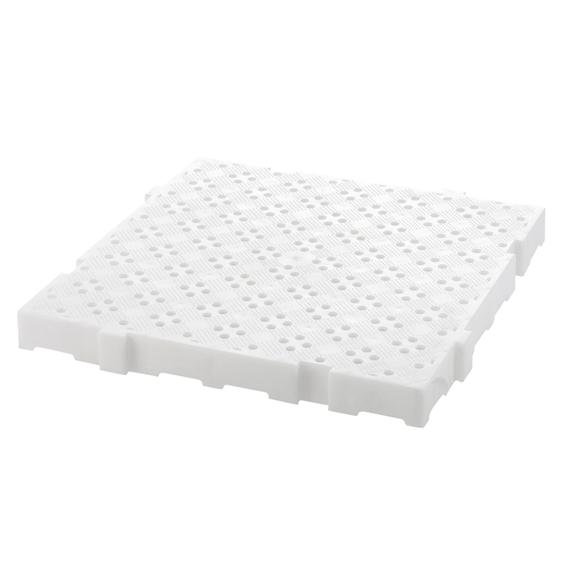Square and made of honeycomb polypropylene to allow air circulation, it has dimensions of 335 x 335 mm.