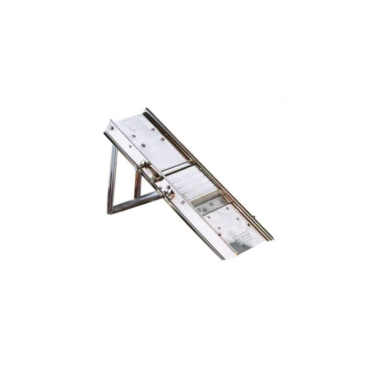 Táto Mandolína V má 5 nožov z nerezovej ocele s hrúbkou 6 mm pre julienky a 9 mm pre hranolčeky. Jej rám je sklopiteľný a má integrovaný vodorovný V tvar noža. Hrúbka plátkov je nastaviteľná od 1 do 9 mm. Táto mandolína má posúvač s kovovými hrotmi na zabránenie zraneniam.